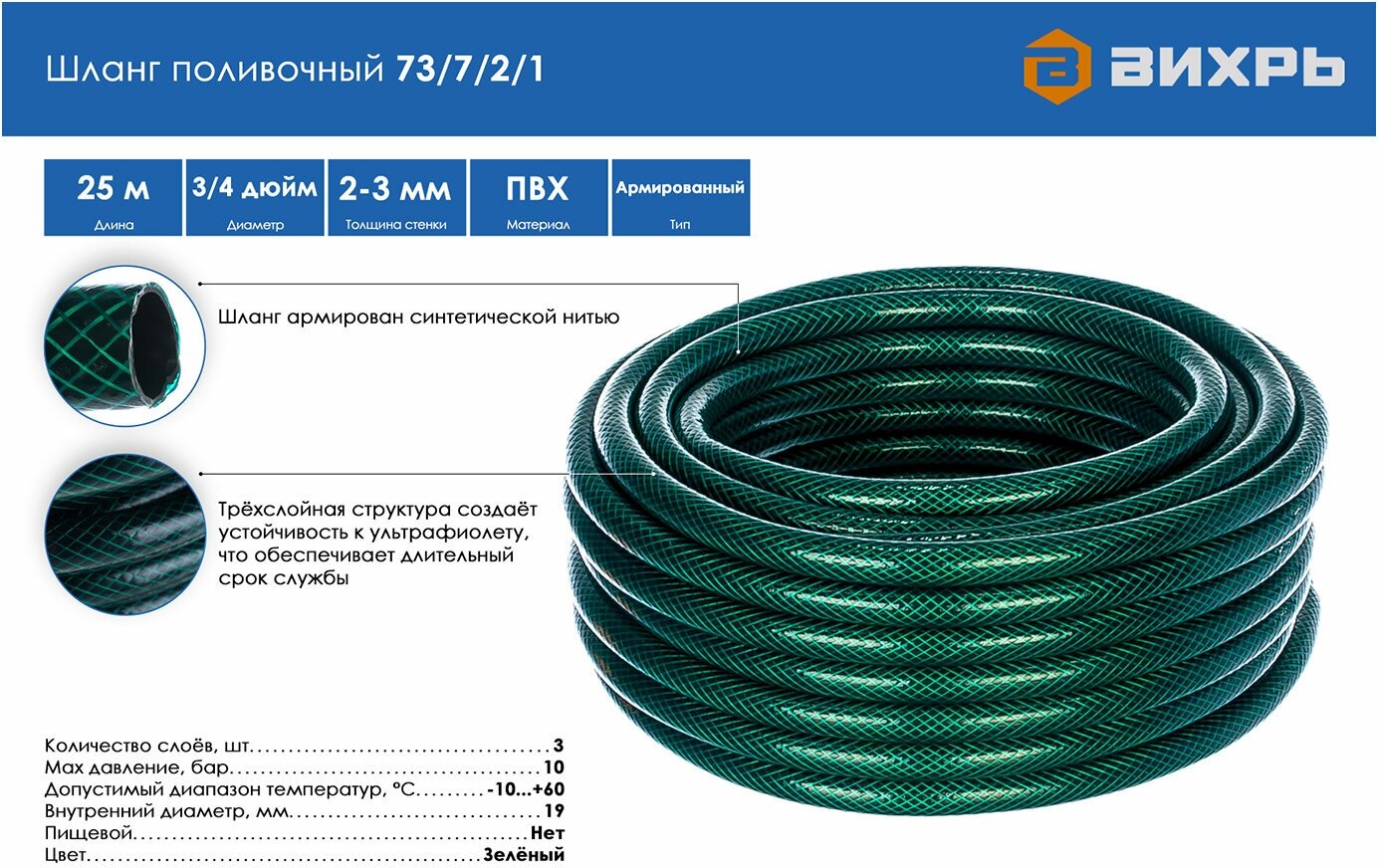 Шланг Вихрь 3/4" 25м 73/7/2/1 .