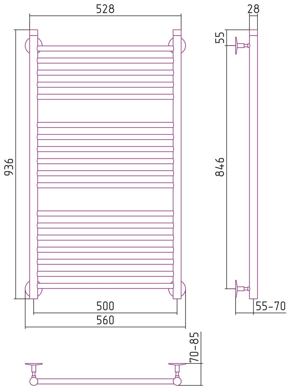 Водяной полотенцесушитель Aquanet Mauro(г2) 800x500