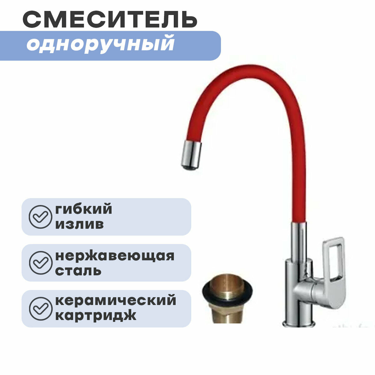 Смеситель одноручный Z35-35U-Red (35 мм) для кухни с гибким цветным изливом, хром/красный
