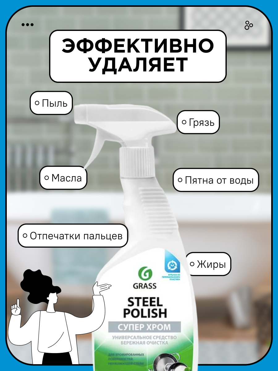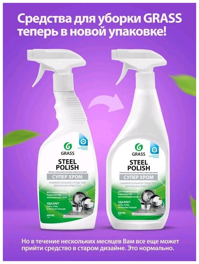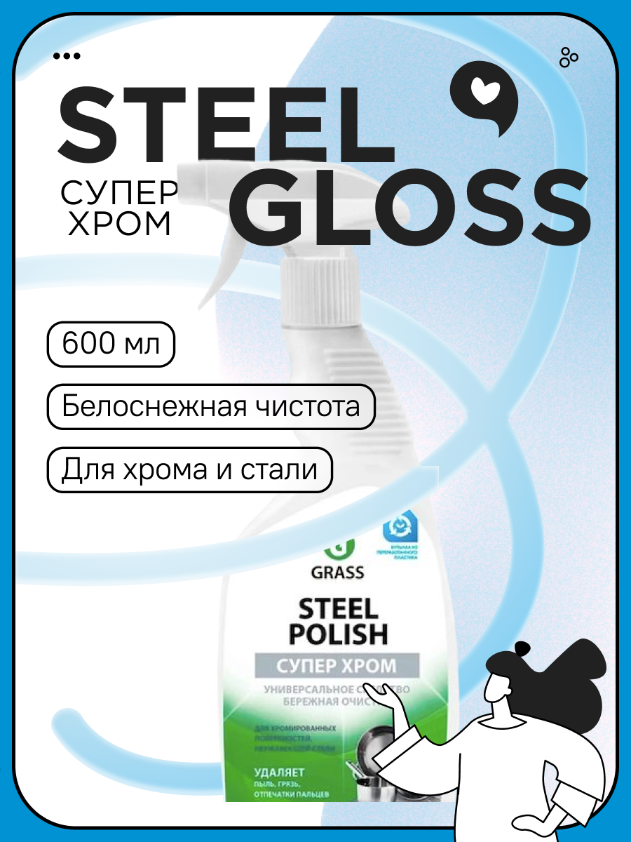 истящее средство для уборки ванной кухни Grass Steel Polish универсальное средство посуда 600 мл