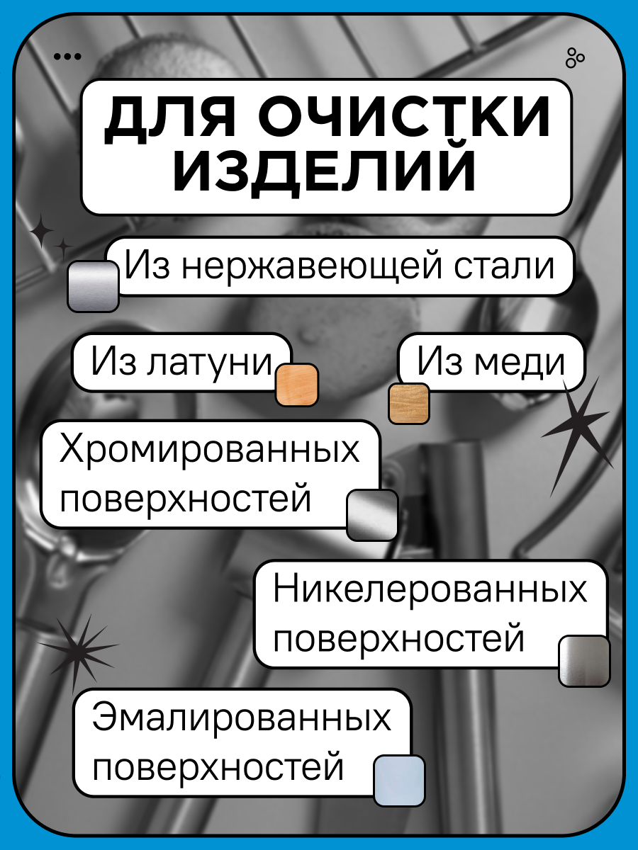 | Плюсы: | Хорошее средство для очистки изд. из нерж. стали |