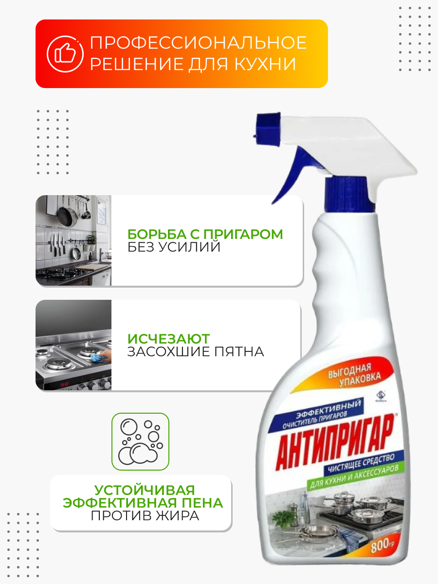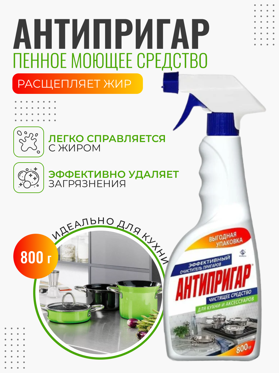СохранитьАнтипригар – жироудалитель, средство для очистки кухонных плит и посуды от пригара, жира и налета, 800 г интересное: