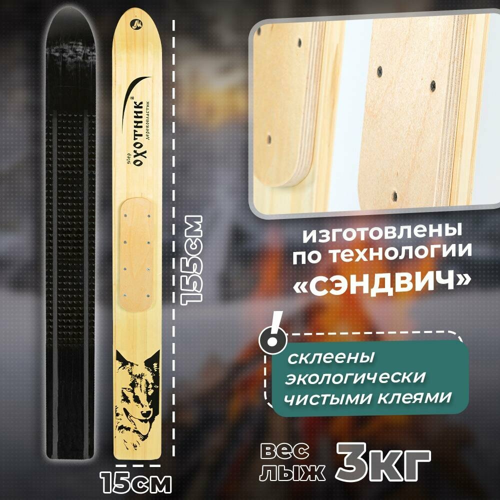 Охотничьи лыжи Маяк охотник 125х15 см, дерево-пластик + накладки, дерево