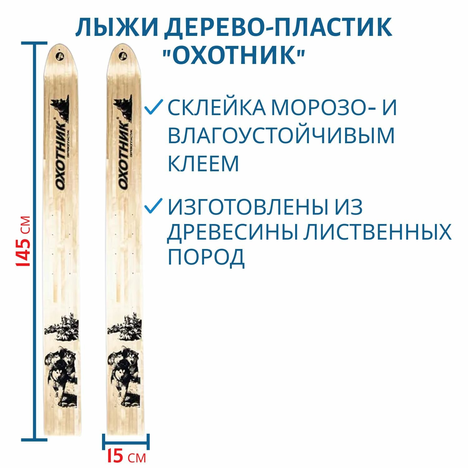Лыжи охотничьи пластиковые Маяк охотник 145х15 см с деревянными накладками (дерево-пластик)