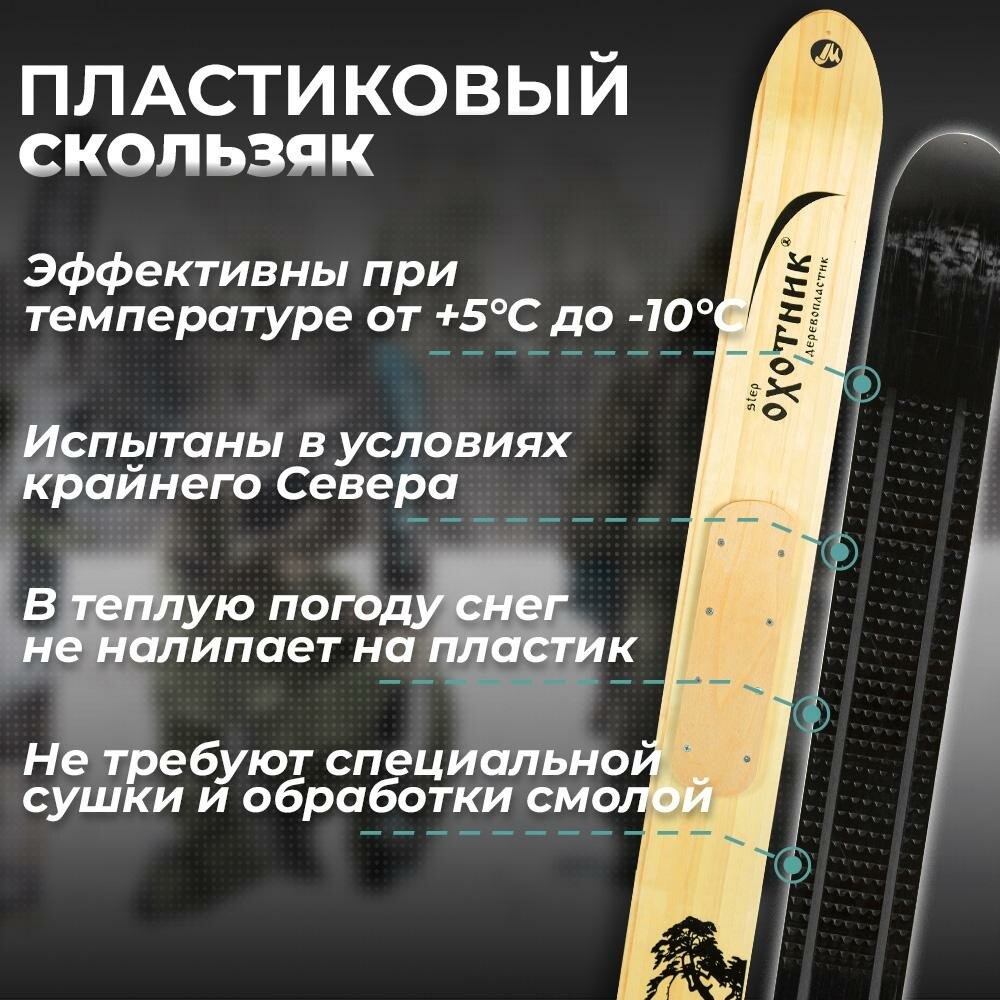 Охотничьи лыжи Маяк охотник 125х15 см, дерево-пластик + накладки, дерево