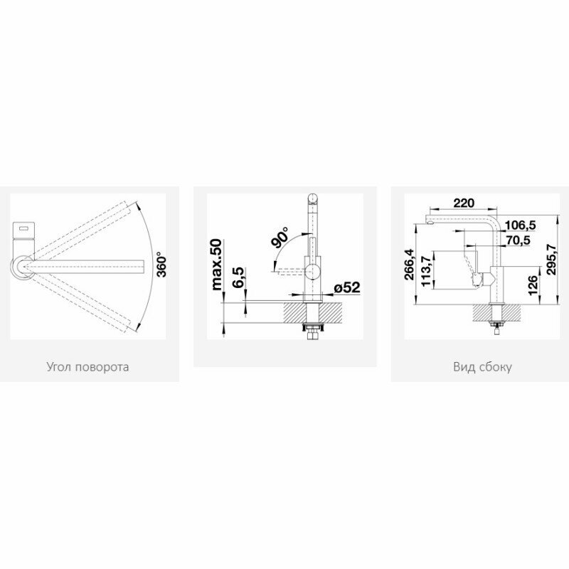 | Высота излива | 266 мм / 296 мм |