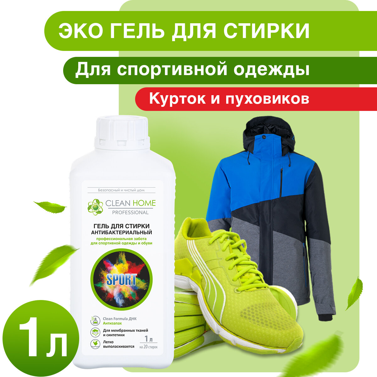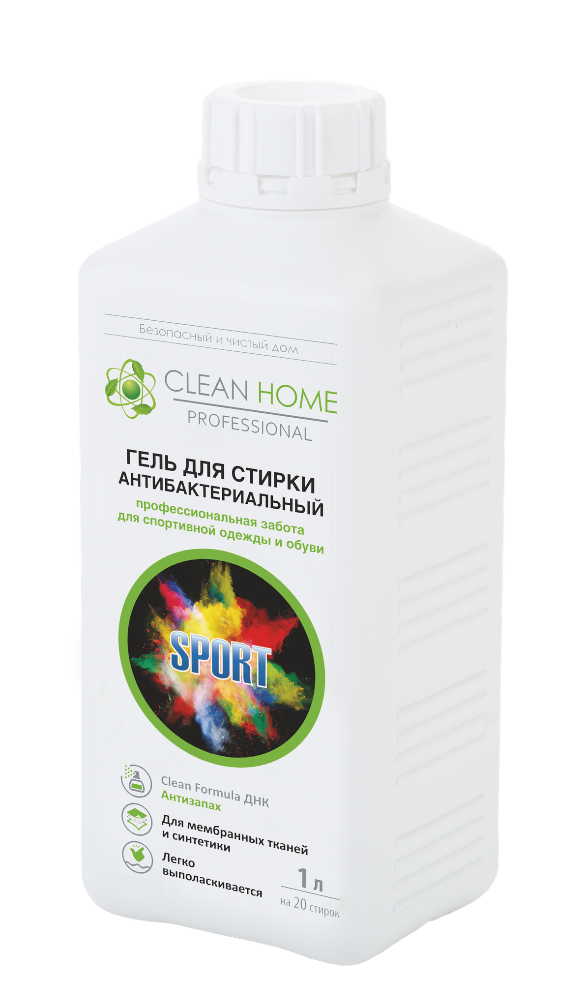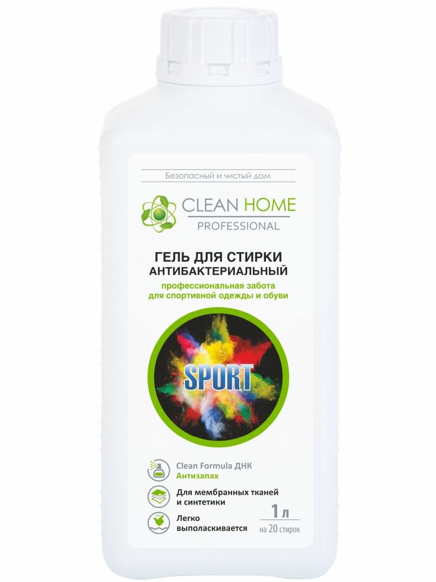 CLEAN HOME Гель для стирки антибактериальный для спортивной одежды и обуви формула "Антизапах" 1л