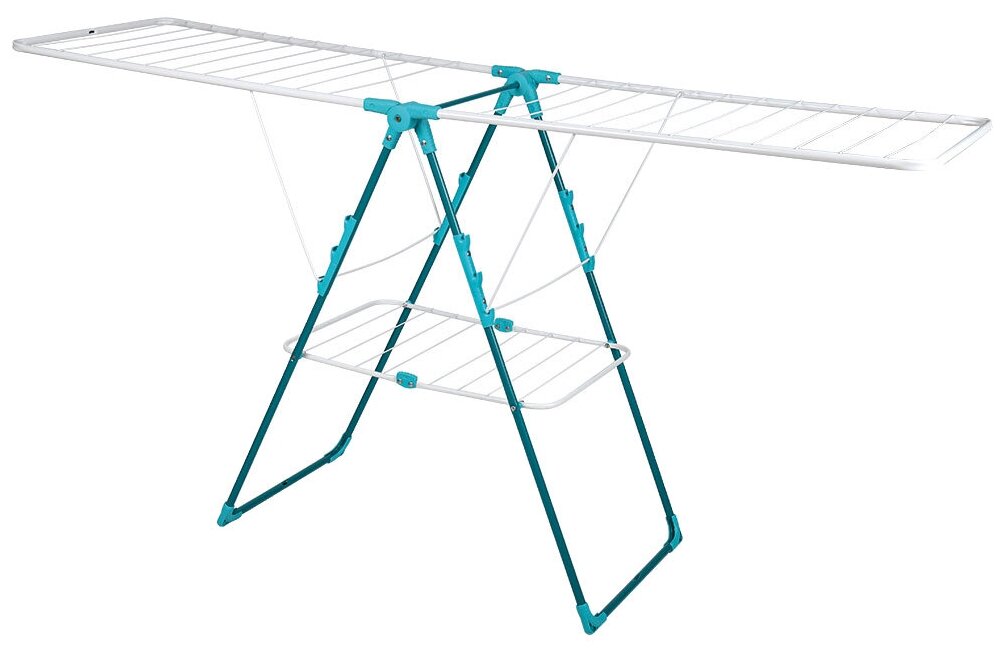 | Минусы: | Состоит из 2 крыльев, которые регулируются по высоте, но! поднять на высоту, которая бы в конкретной ситуации (небольшое количество белья) сэкономила пространство в квартире,увы, невозможно. Поднять можно только на небольшой угол и, что важно не обе створки, а поочередно. |