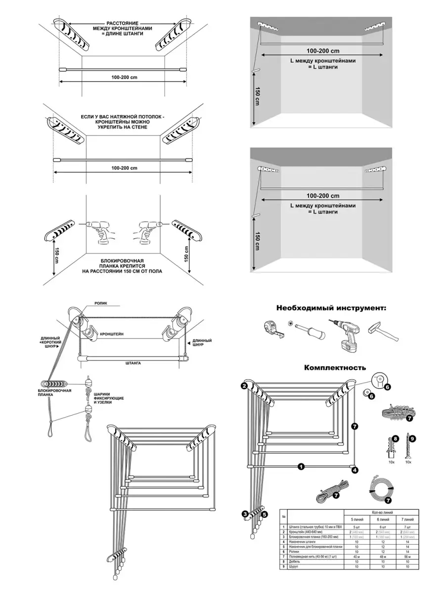 Потолочная сушилка лиана 7 лиана 2,0 м