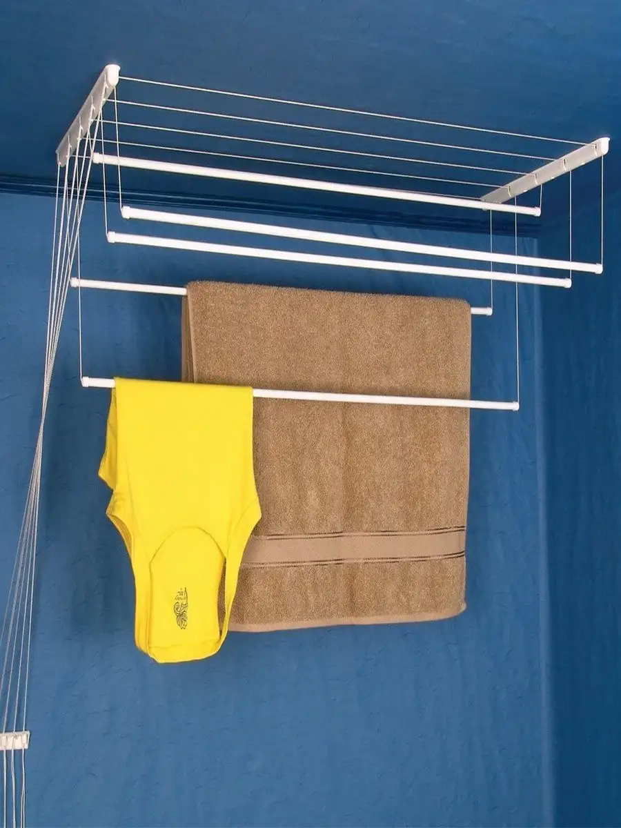| Плюсы: | Не нужно прыгать со стулом чтобы повесить белье. Можно опустить на нужный уровень. |