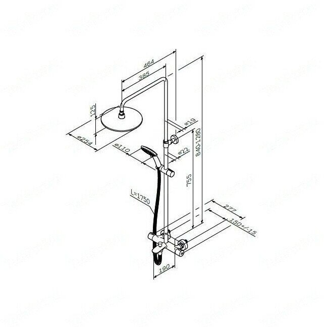 F0780564 Like душ.система, набор: смеситель д/ванны/душа с термостатом, верх.душ.d 250 мм, ручной ду