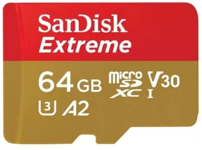 Карта памяти SanDisk microSDXC 64 ГБ Class 10, V30, A2, UHS Class 3, R/W 170/90 МБ/с, адаптер на SD