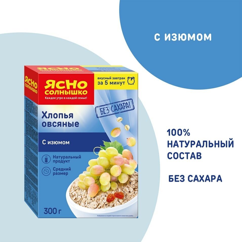 Ясно cолнышко Хлопья овсяные с изюмом, 300 г интересное: