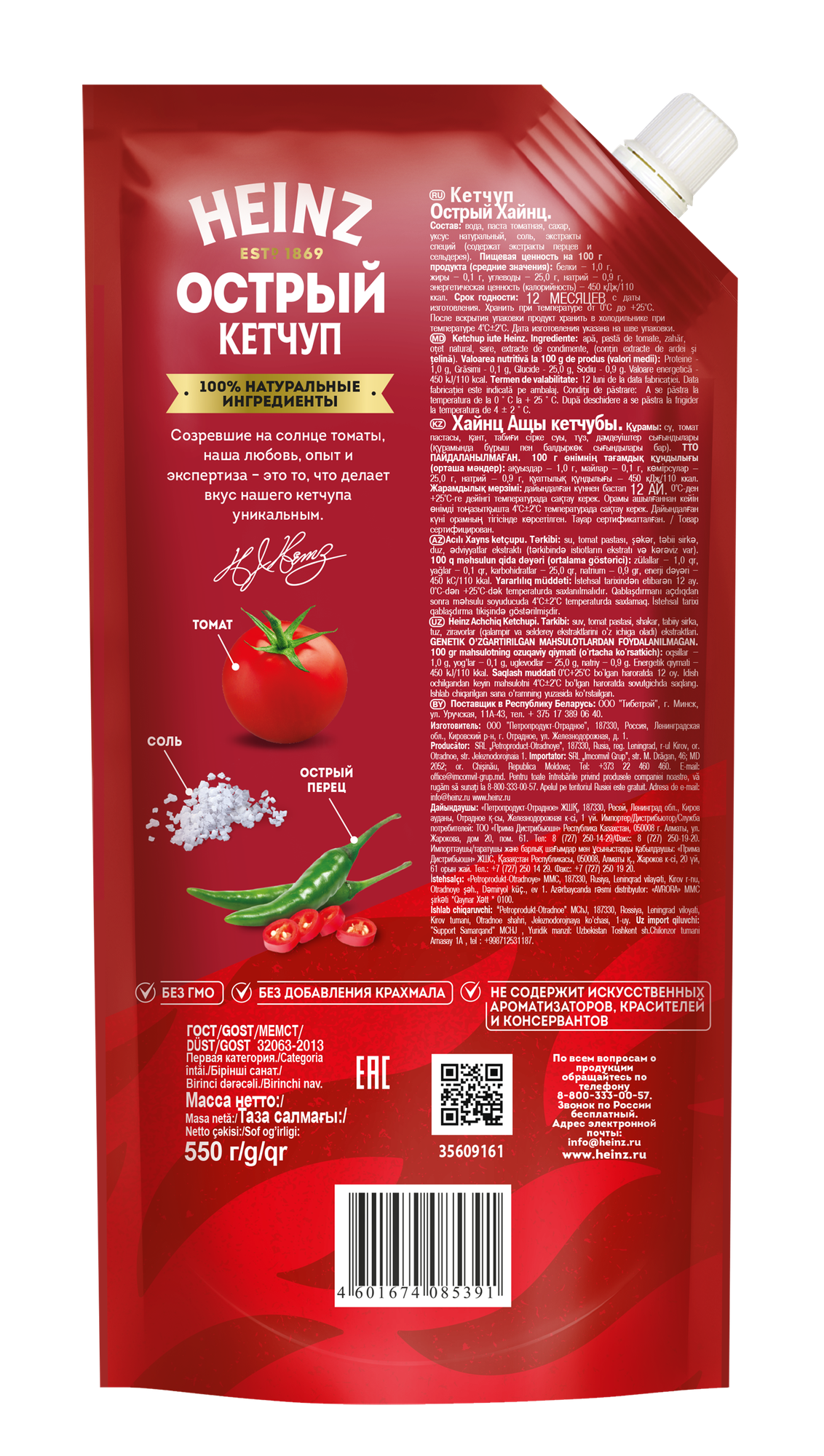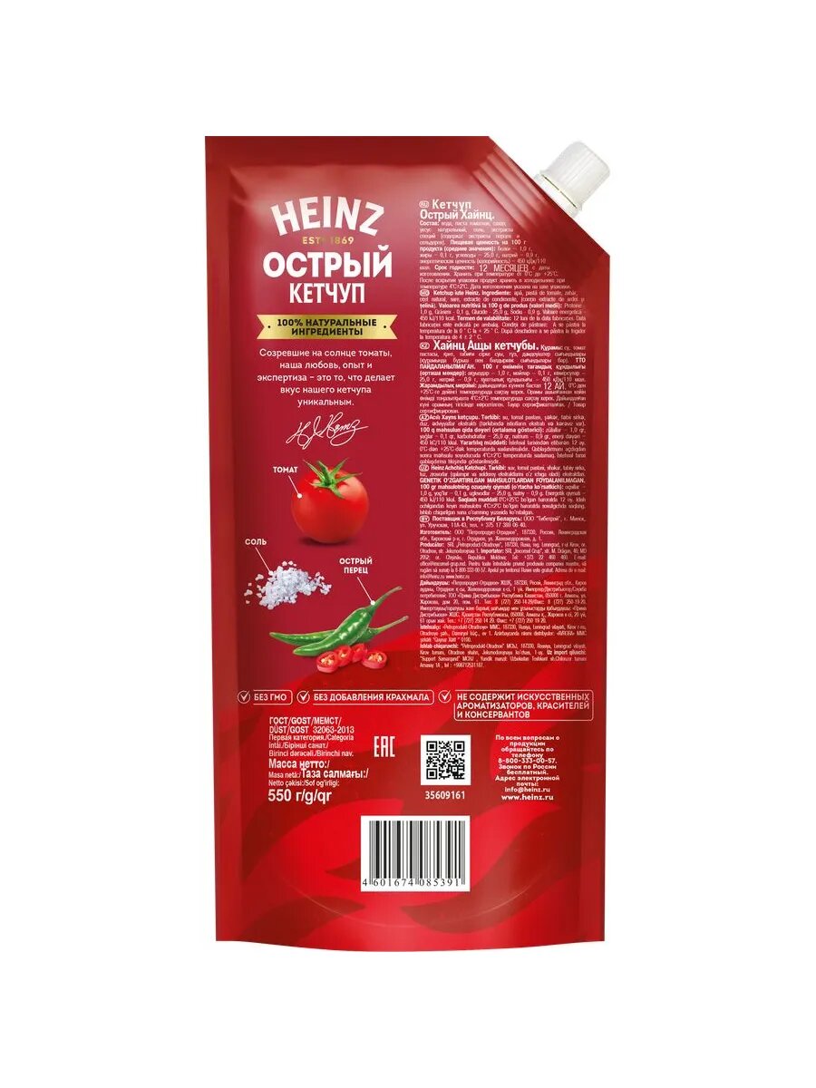 Heinz - кетчуп Острый, 550 гр. интересное: