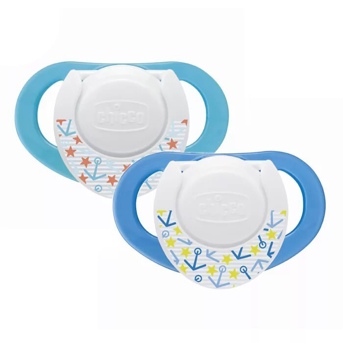 Купить Пустышка силиконовая ортодонтическая Chicco Physio Compact 12+, 2 шт., голубой/синий