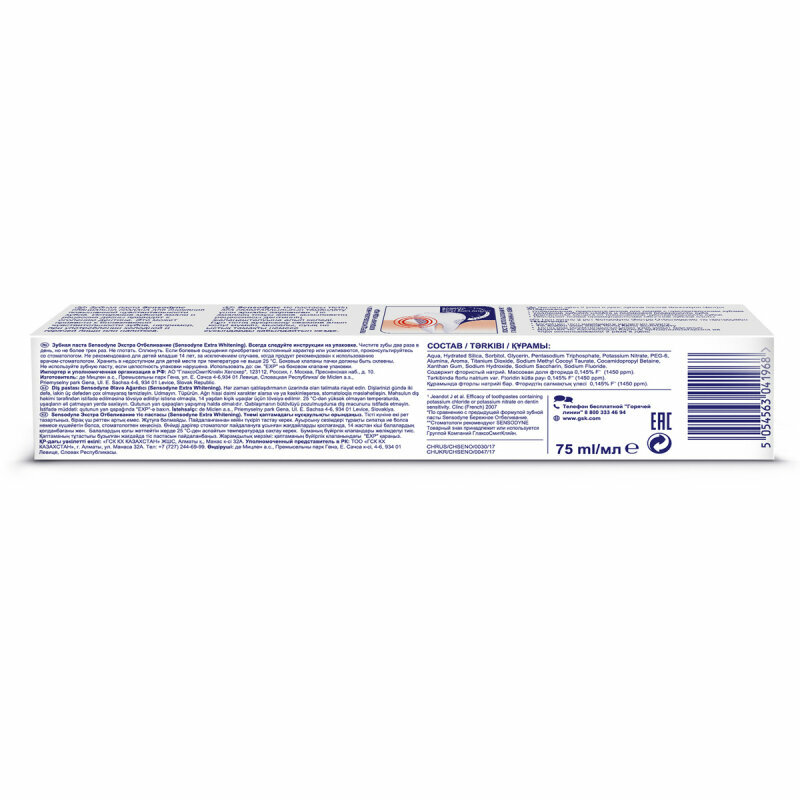 Зубная паста Sensodyne Экстра Отбеливание, для чувствительных зубов, 75 мл., 1шт.
