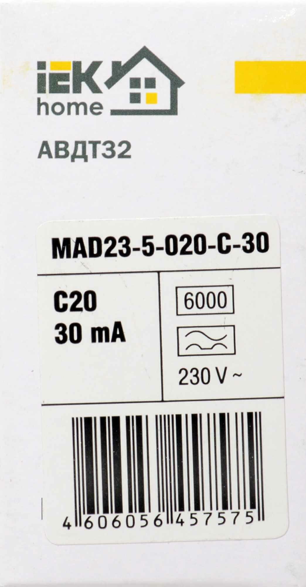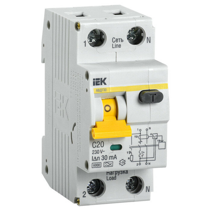 Купить Дифференциальный автомат Iek Home АВДТ-32 1P N C20 A 30 мА 6 кА AC MAD22-5-020-C-30