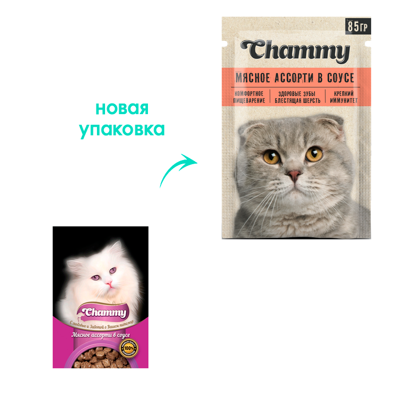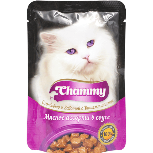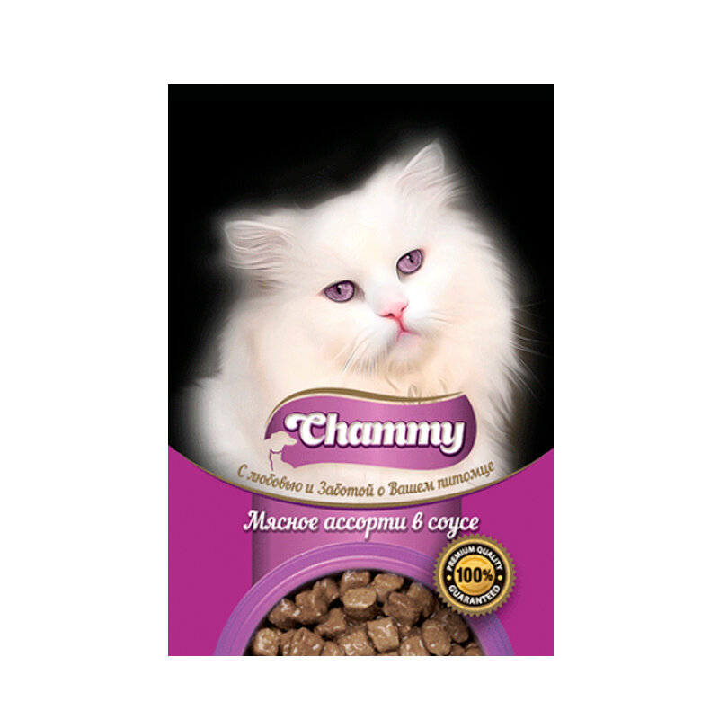 Влажный корм Chammy для кошек, мясное ассорти в соусе, пауч, 85 г(25 шт.)