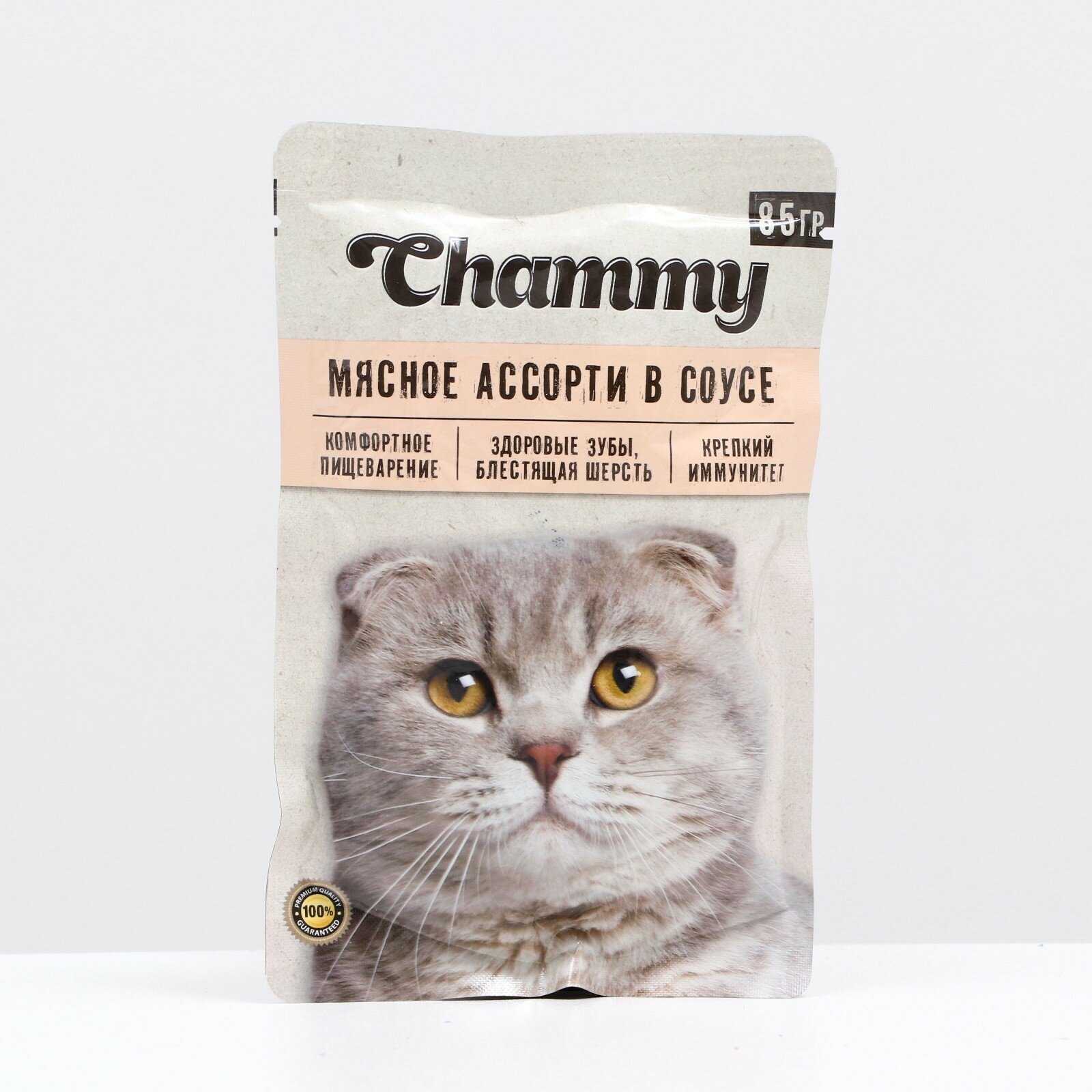 Влажный корм Chammy для кошек, мясное ассорти в соусе, пауч, 85 г