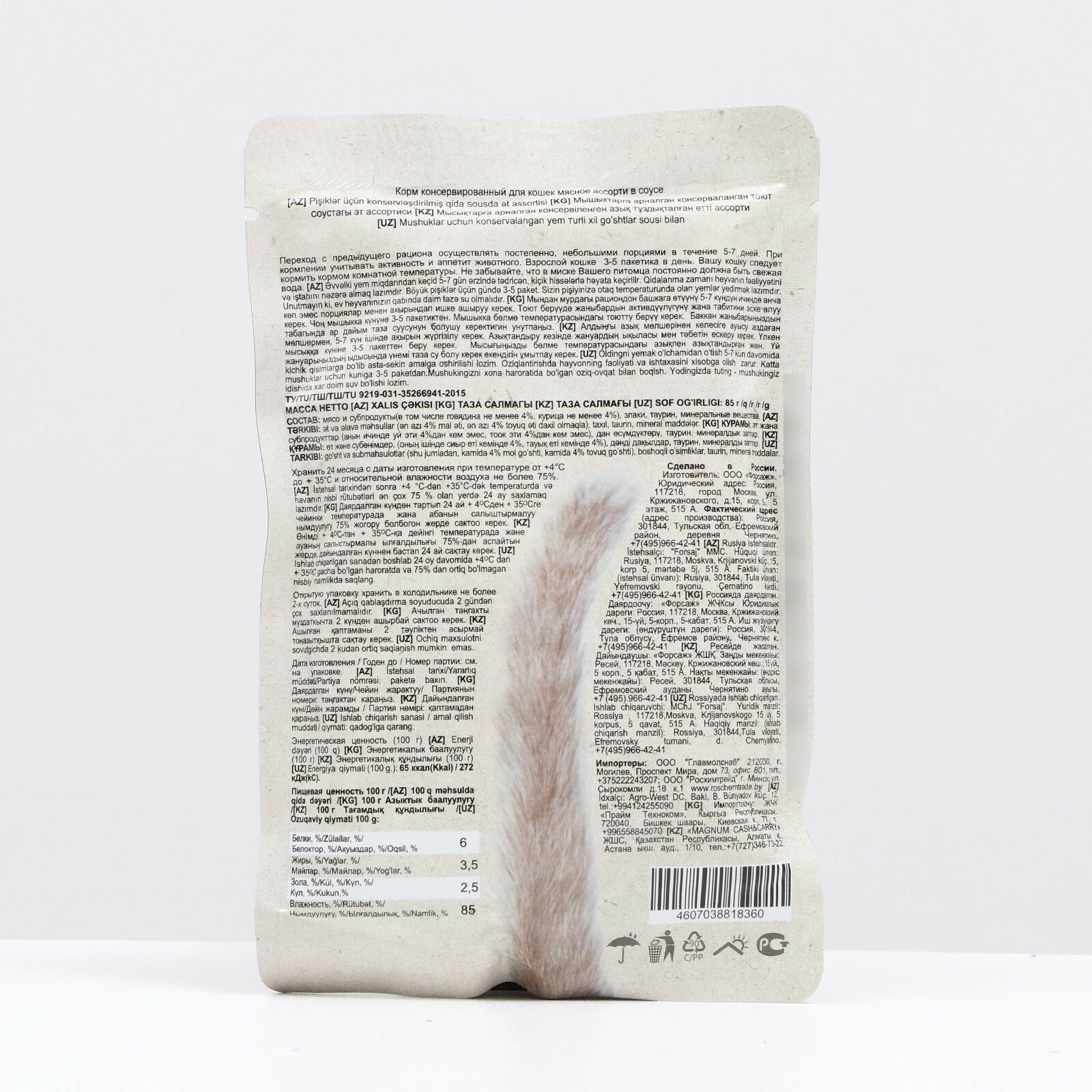 Ниже Вы можете прочитать отзывы на Влажный корм для кошек, мясное ассорти в соусе, пауч, 85 г, ознакомится с подробными характеристиками, посмотреть интересные обзоры и фотографии на Влажный корм для кошек, мясное ассорти в соусе, пауч, 85 г.