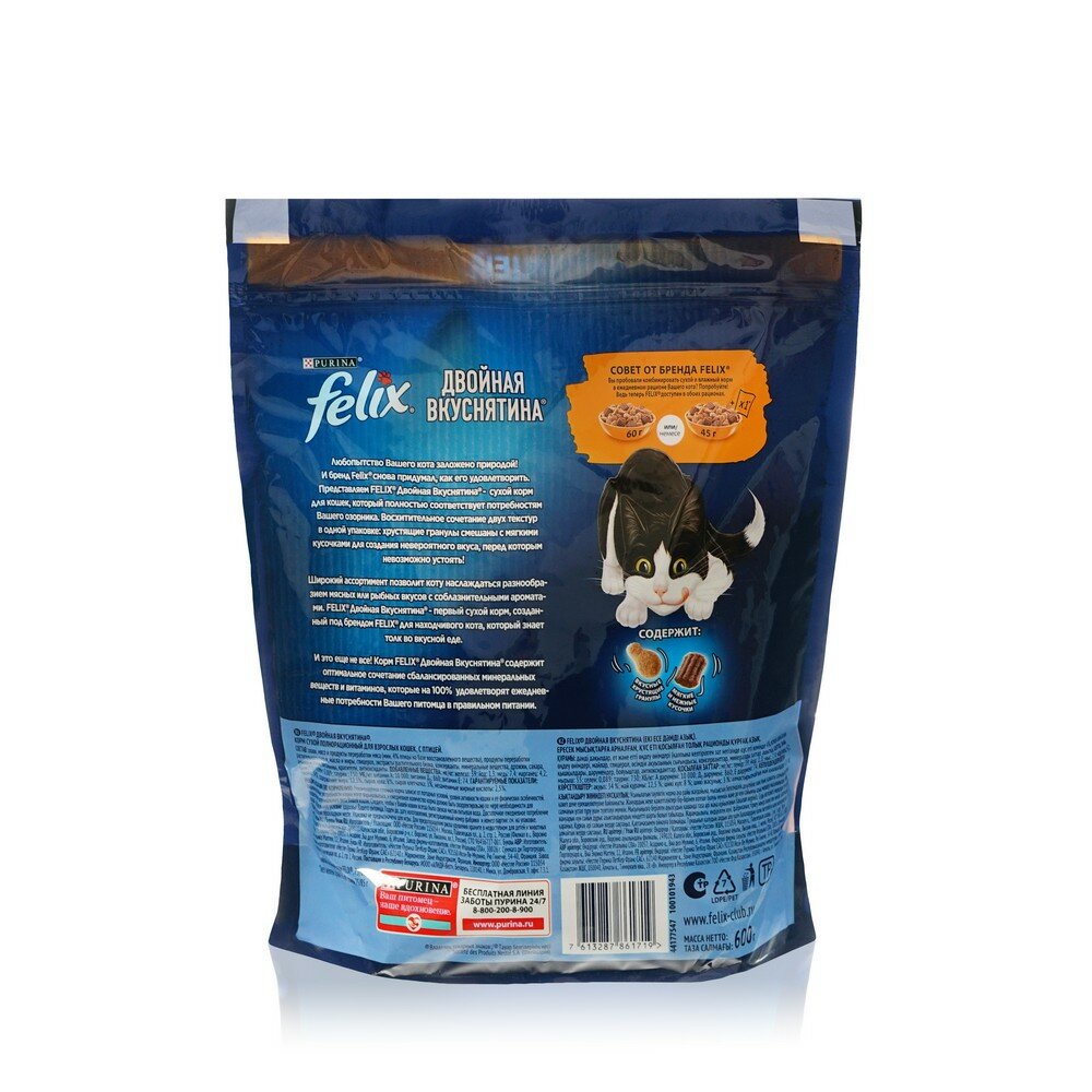 Сухой корм FELIX "Двойная вкуснятина" для кошек, птица, 600 г 9542076