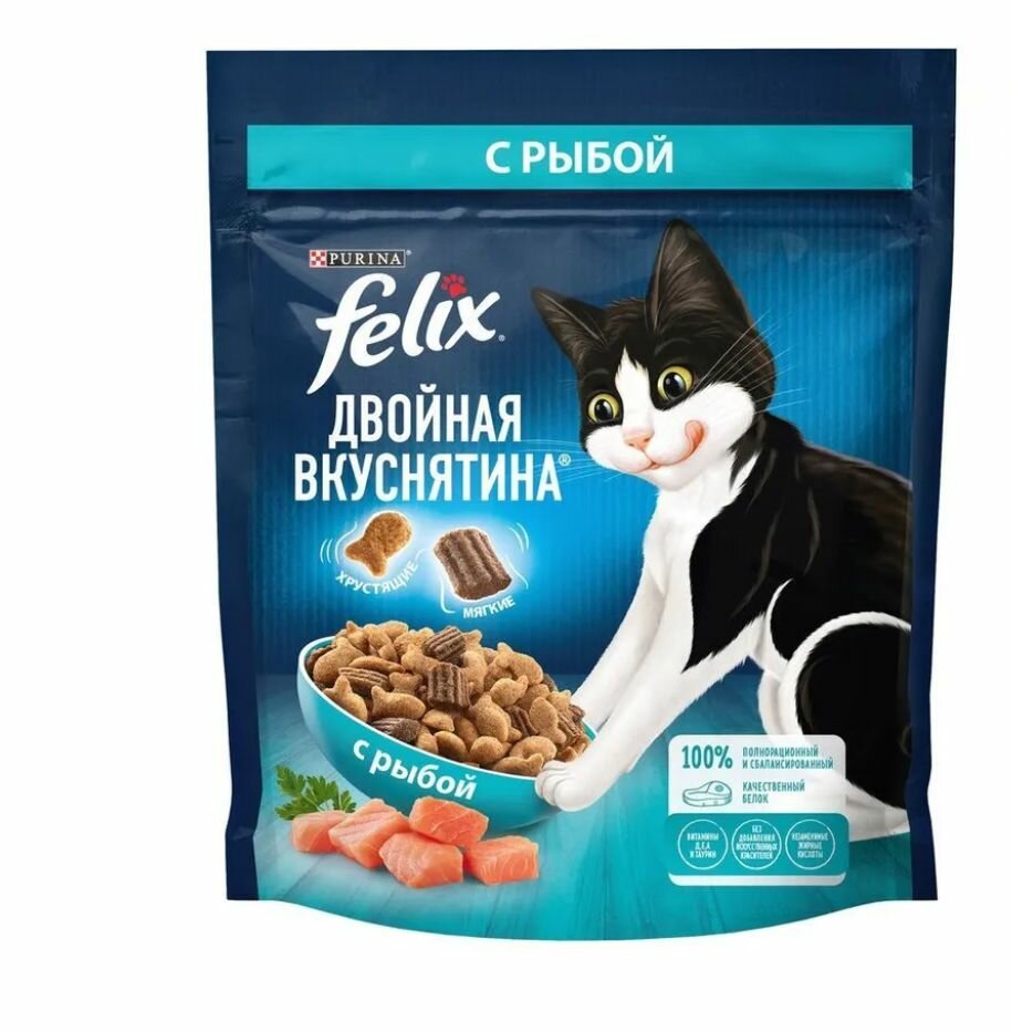 Felix Двойная вкуснятина 200 г сухой корм для взрослых кошек, с рыбой