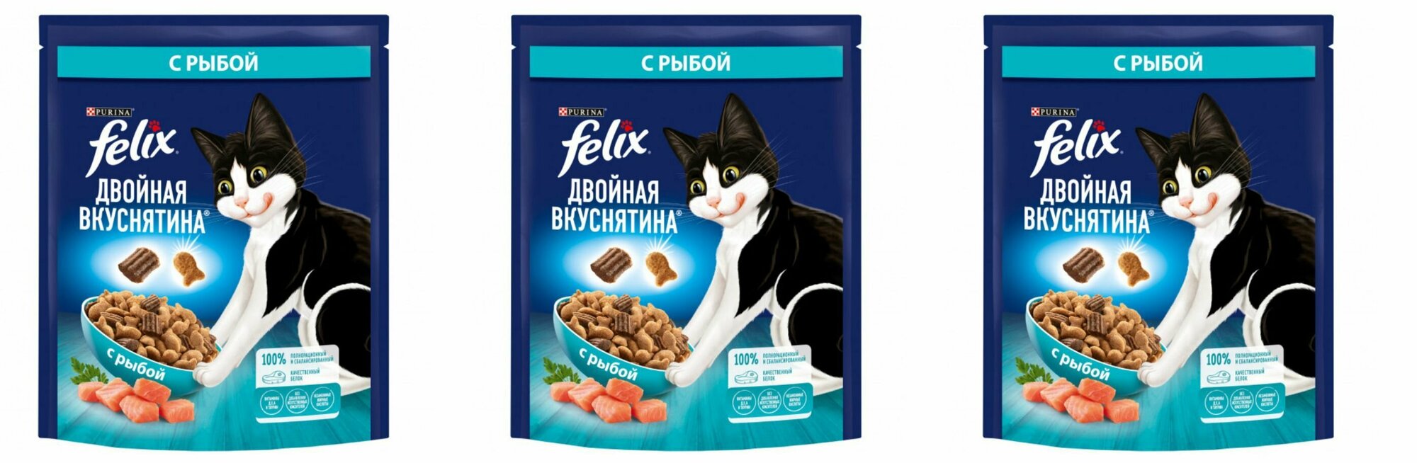 Сухой корм Felix Двойная Вкуснятина для взрослых кошек, с рыбой, Пакет, 200г х 3 шт