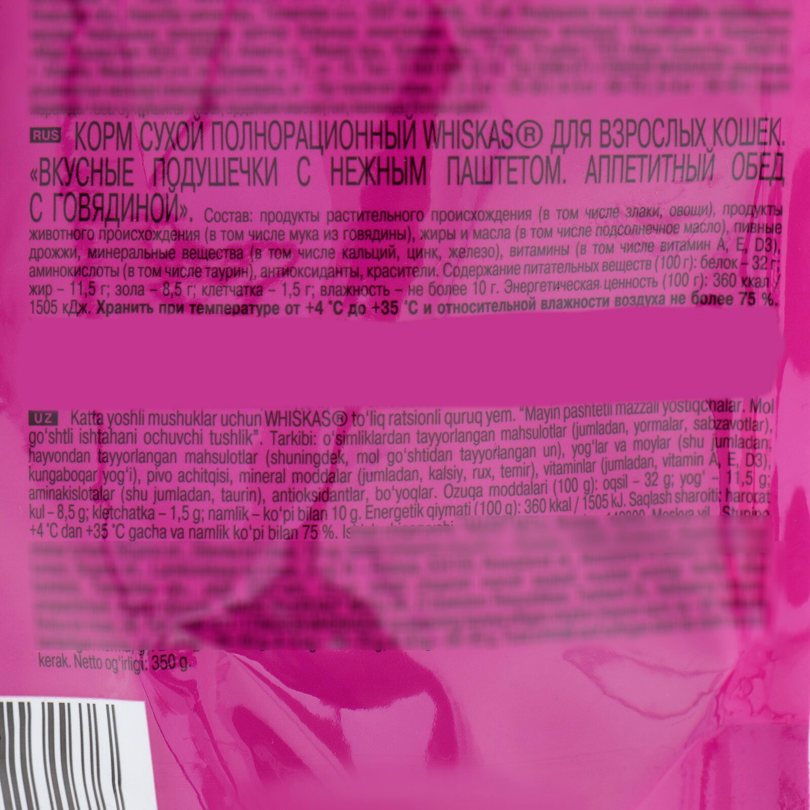 Ниже Вы можете прочитать отзывы на Корм для кошек (подушечки) Whiskas С Говядиной 350 г, ознакомится с подробными характеристиками, посмотреть интересные обзоры и фотографии на Корм для кошек (подушечки) Whiskas С Говядиной 350 г.