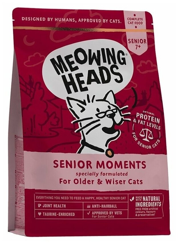Meowing Heads Senior Moments - Сухой корм для кошек старше 7 лет с лососем и яйцом "Мудрые года" (1,5 кг)