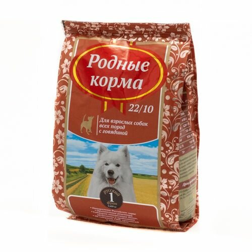 Cухой корм для взрослых собак с говядиной, родные корма 22/10 5 русских фунтов 2,045 кг