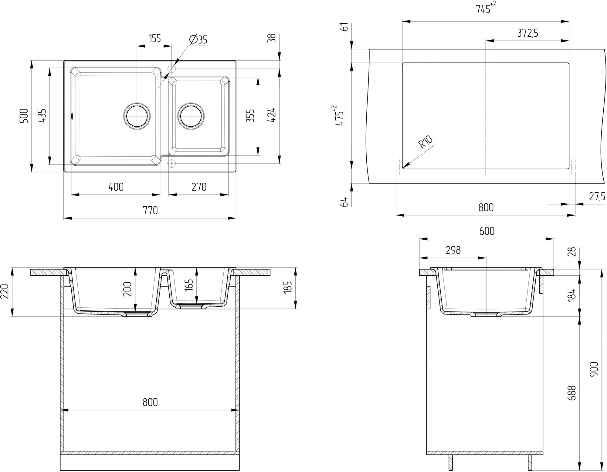| Ширина мойки | 77 см |