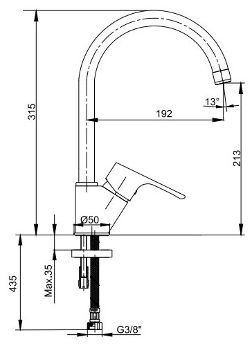 | Высота излива | 213 мм |