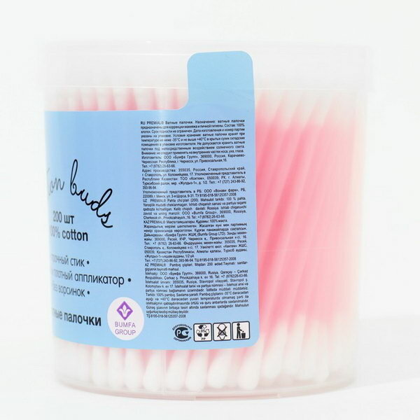 Premial beauty Ватные палочки, в банке цилиндр, 200 шт