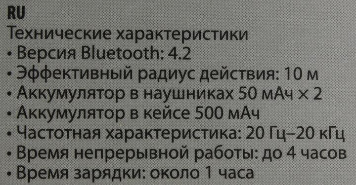 | Минусы: | Принцип работы - как и у всех true wireless наушников. Один из них - принимает сигнал с телефоне и передаёт на второй наушник.