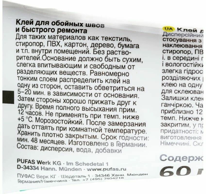 Пуфас 741 клей для стыков обоев (0,06кг) / PUFAS N0741Uni-Fix клей для обойных швов и быстрого ремонта (60г)