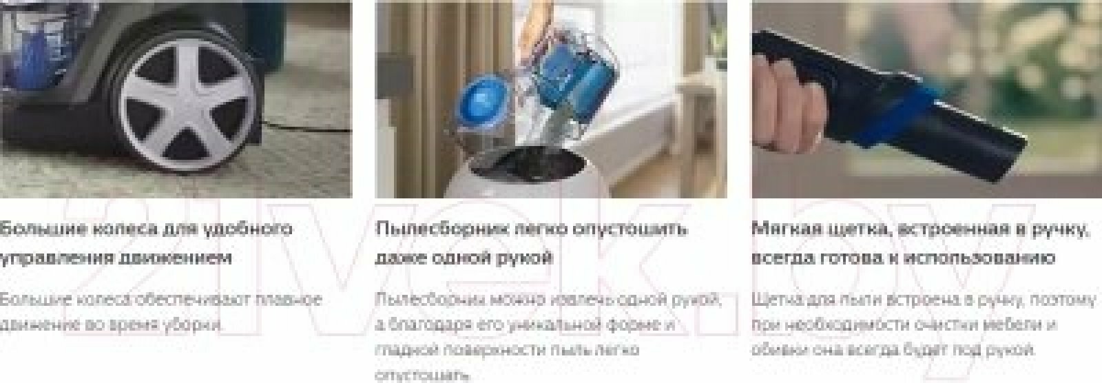 - Нет ручки, чтобы перененести, единственная ручка находится у пола, нагибайтесь, переворачивайте пылесос, фитнес; - Небольшая мощность всасывания. Не знаю, кто пишет что он мощный - это совсем не так. Может быть сравнивают с беспроводными моделями. Мощность ниже средней по меркам современных пылесосов; - Пылесос совершенно не мобильный!!! Он может ехать только вперед, приходится его толкать ногой, чтобы сдвинуть с места. Вбок не едет, только прямо!!! Это вызывает еще больший дискомфорт при уборке. А теперь, сложите все недостатки и представьте, как вы будете убираться. |