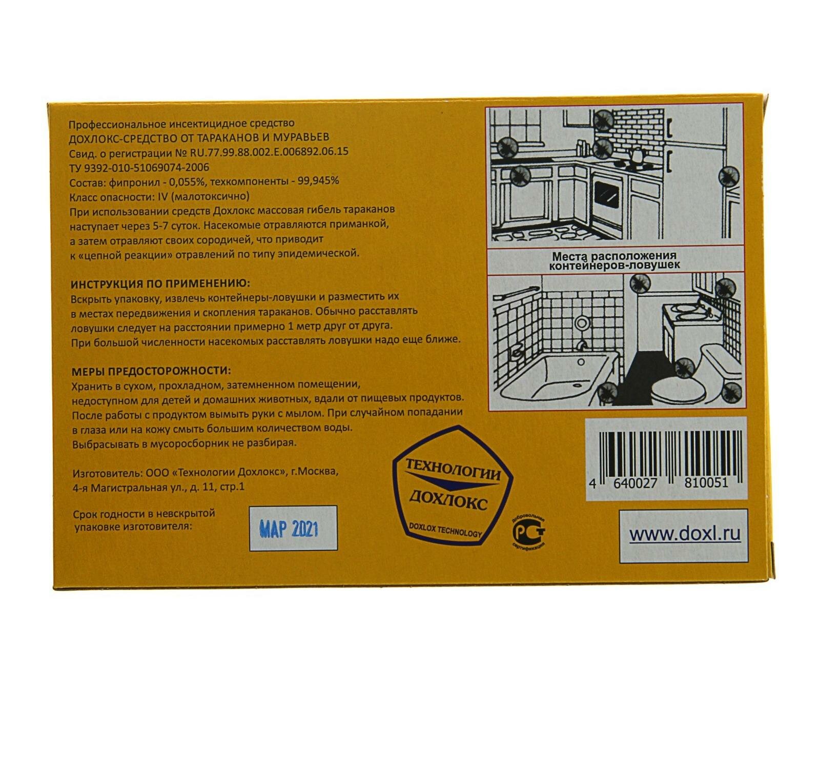 Ловушка Дохлокс "Мгновенный яд" для тараканов, 56 г, 6 шт.