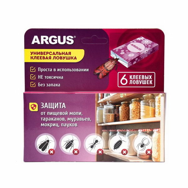 Argus Клеевая ловушка от пищевой моли, тараканов, муравьев, мокриц, пауков, 6 шт (1 уп)