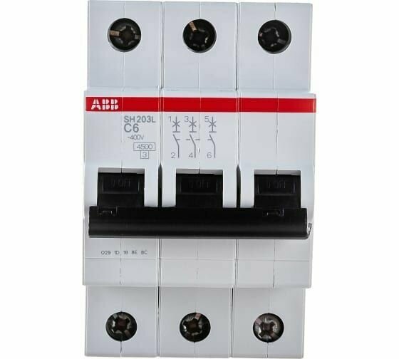 Автоматический выключатель ABB SH200L, 3 полюса, 6A, тип C, 4,5kA