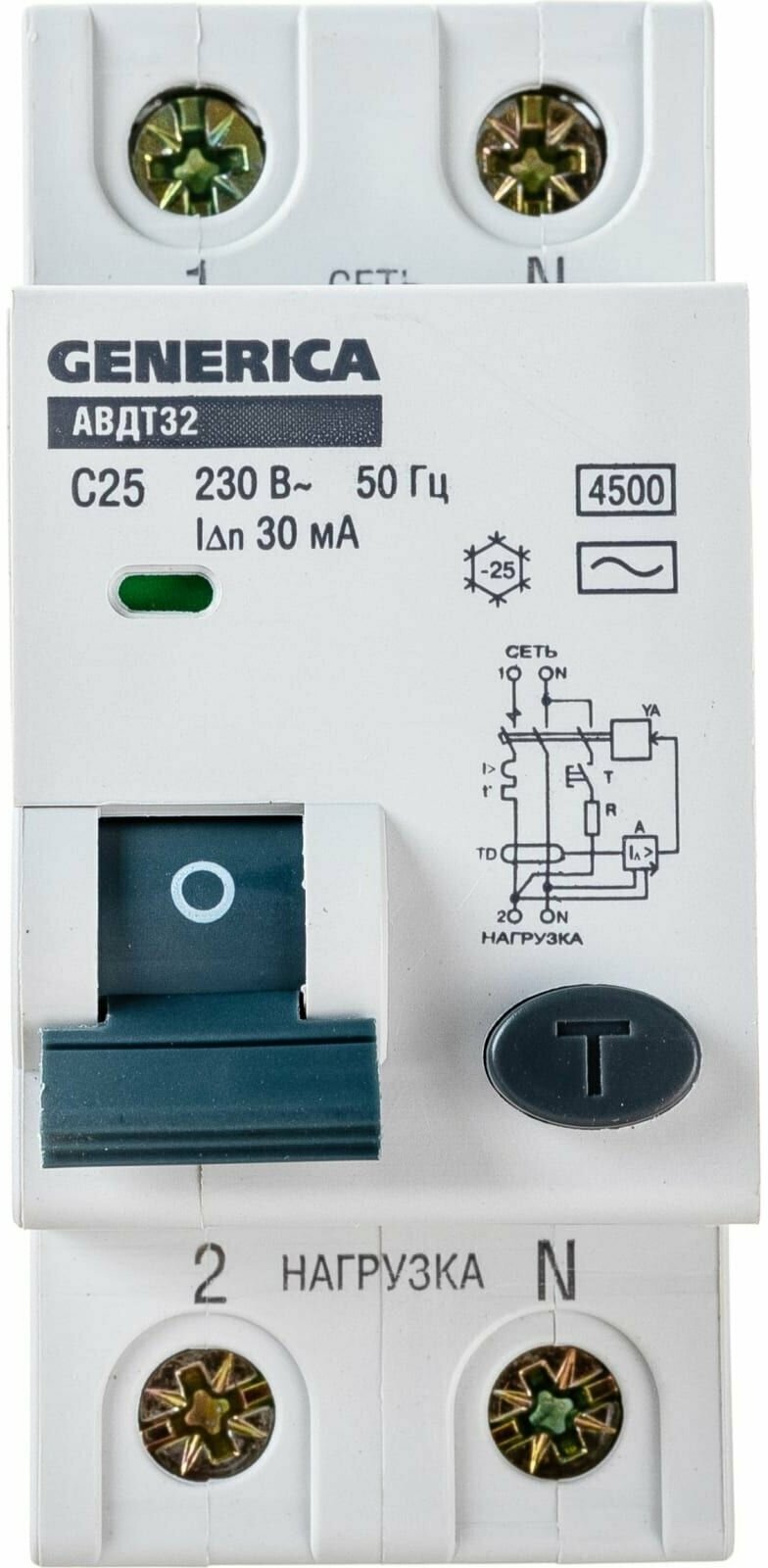 Дифференциальный автоматический выключатель Generica АВДТ 32, 2Р(1Р+N), C25, 30 мА, 4,5 кА