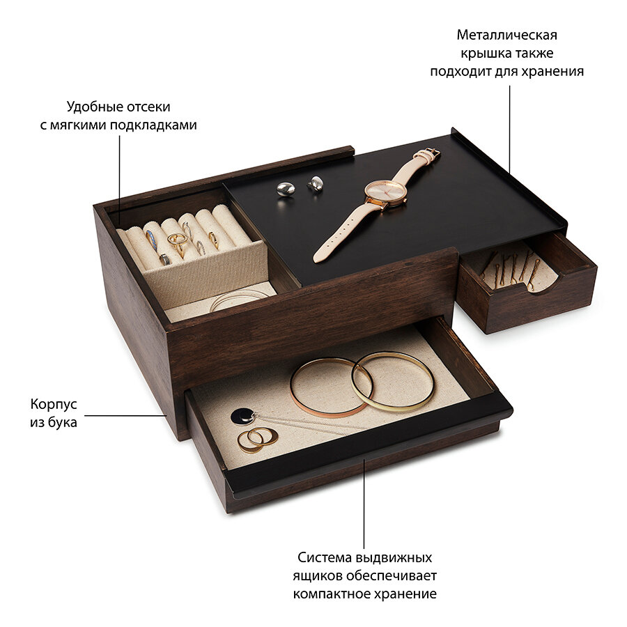 Шкатулка для украшений Umbra Stowit, чёрный-орех