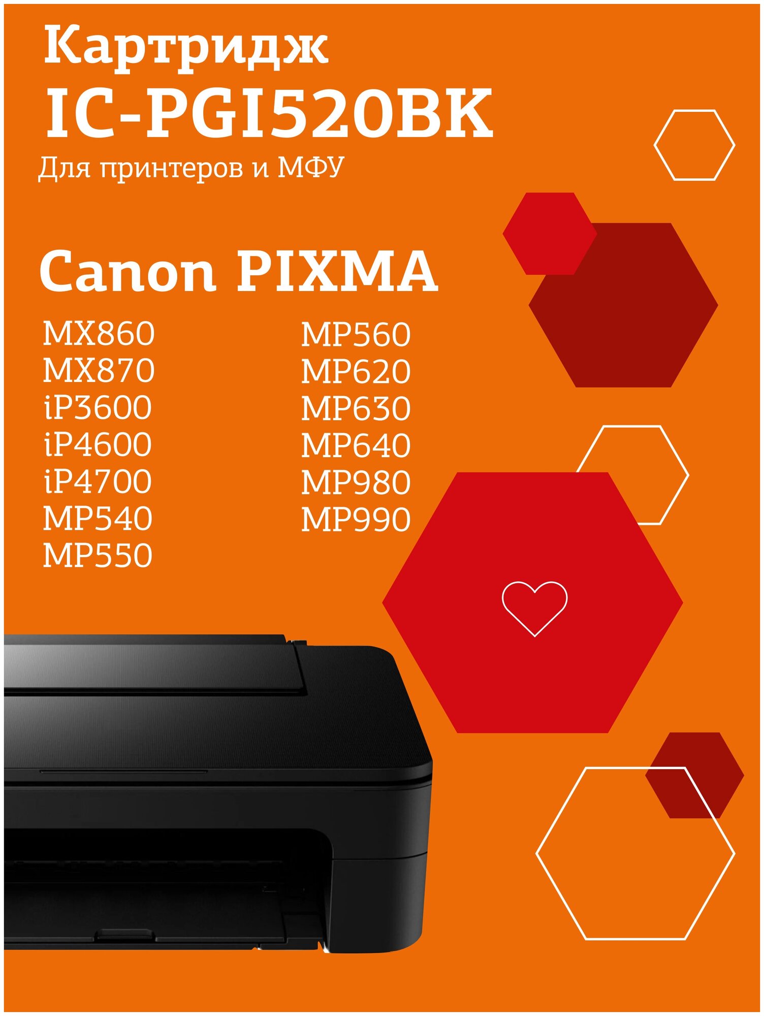 Картридж IC-PGI520BK для Canon PIXMA iP4700, MP540, 620, 980, MX860, черный, с чипом