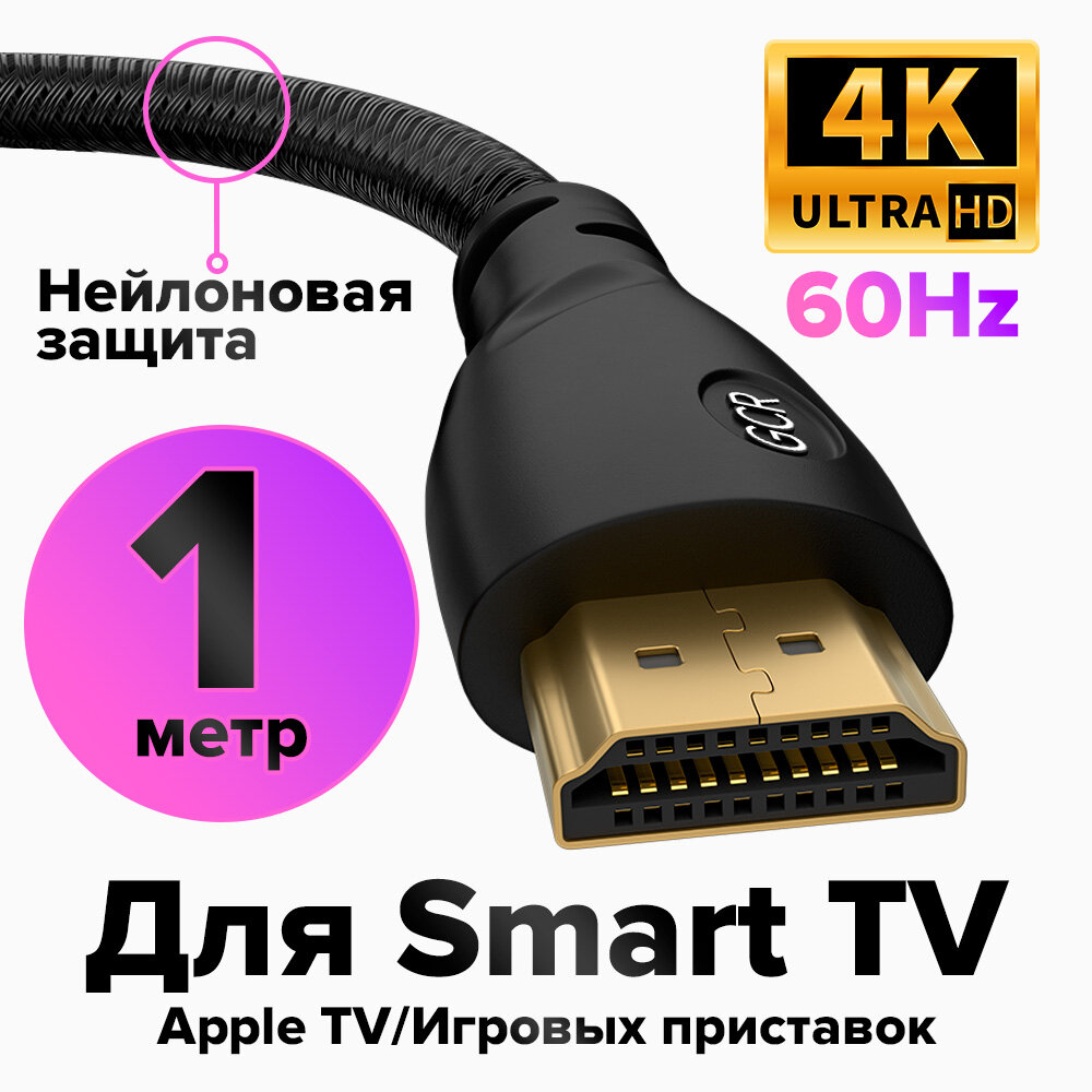 Кабель HDMI 2.0 нейлон Ultra HD 4K 60Hz 18 Гбит/с 3D для Apple TV 24K (GCR-HM800) черный 1.0м
