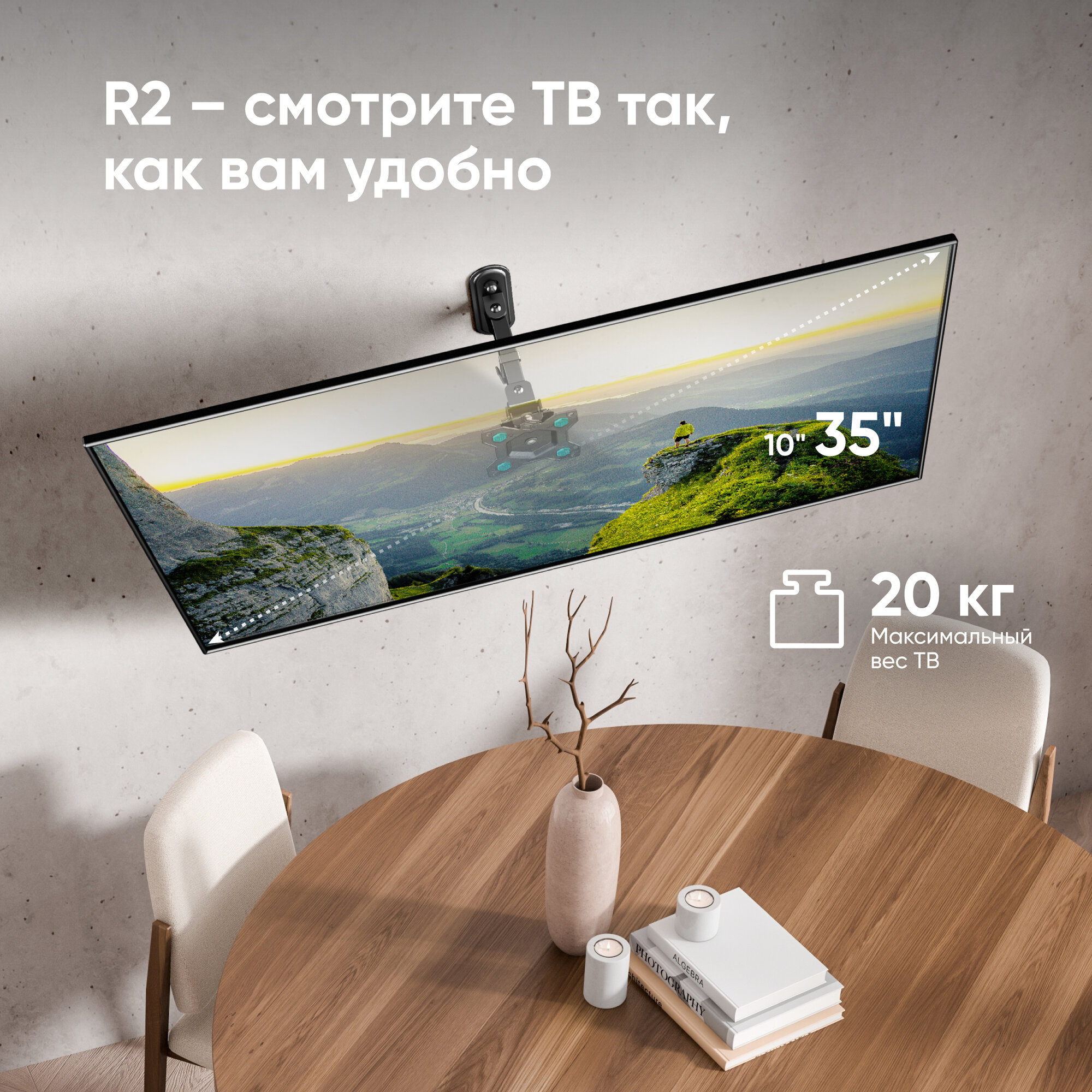 СохранитьКронштейн на стену ONKRON R2 ROTO для телевизора 10"-35", наклонно-поворотный с вращением, до 20 кг, черный интересное: