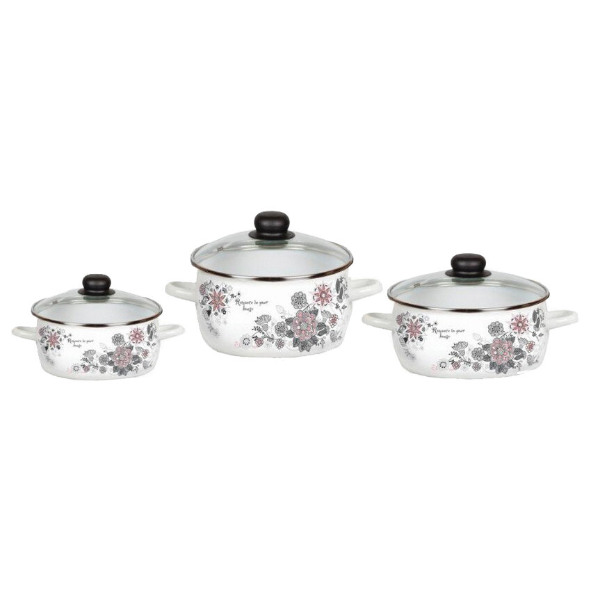 Купить Набор эмалированной посуды 3 предмета "Весенний романс" белоснежный / набор кастрюль / набор кастрюль эмалированных