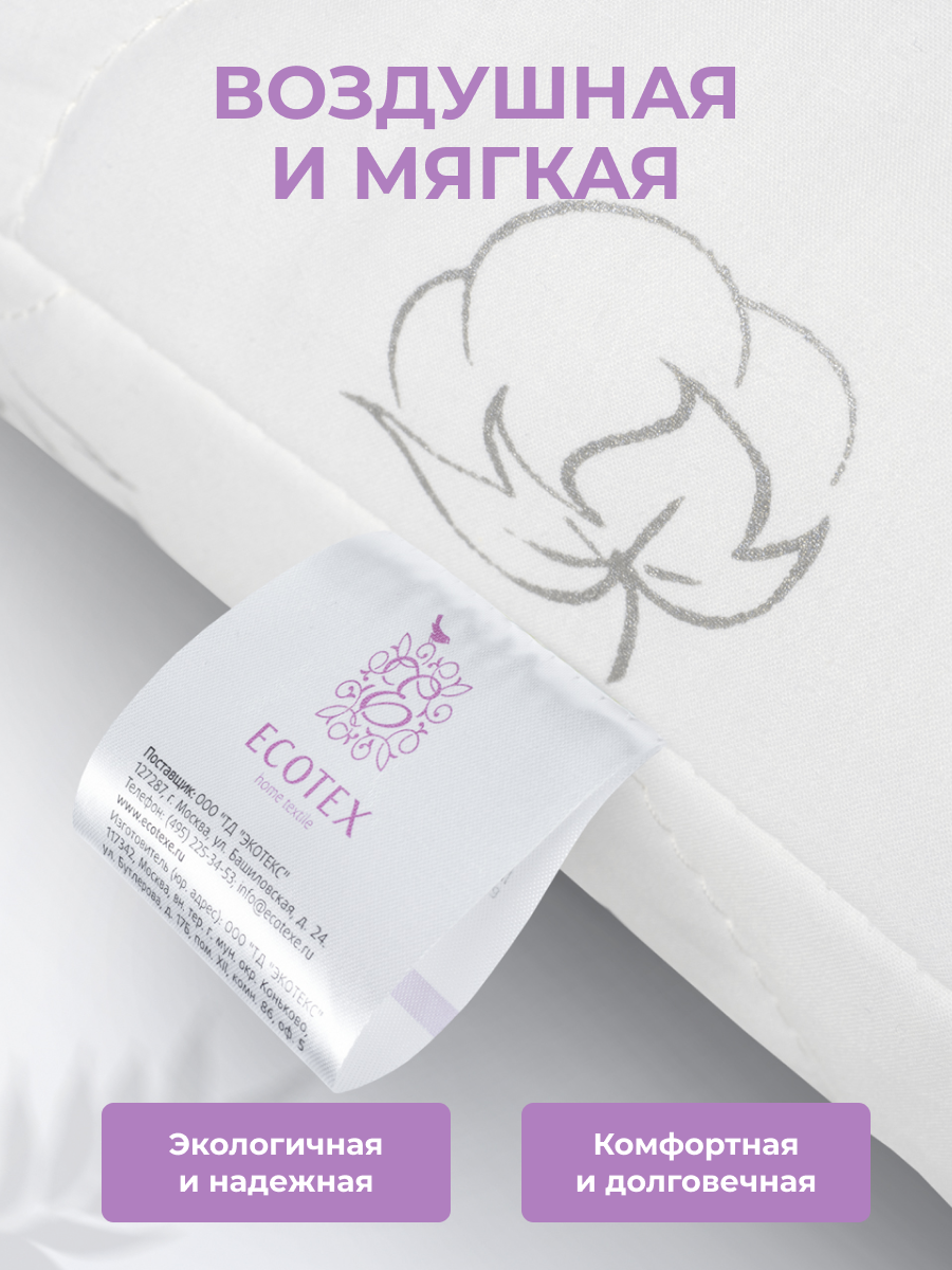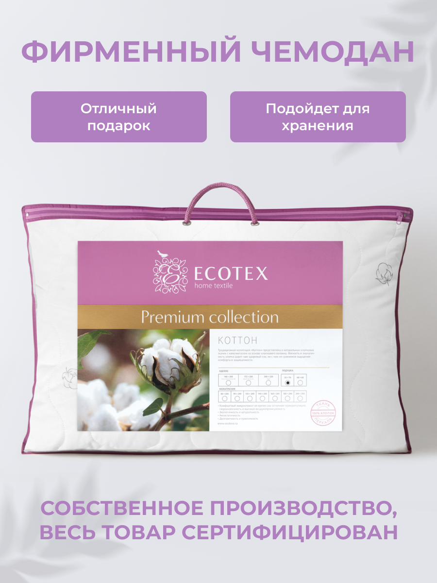 Подушка 50x70 см "Коттон", чехол - перкаль (100% хлопок), Ecotex интересное: