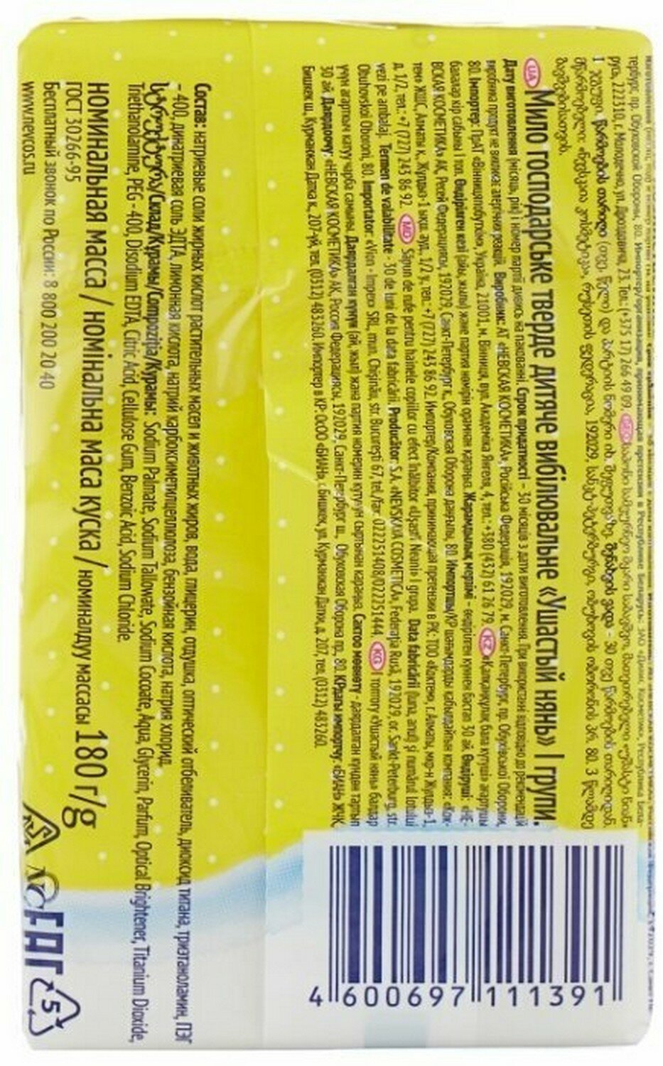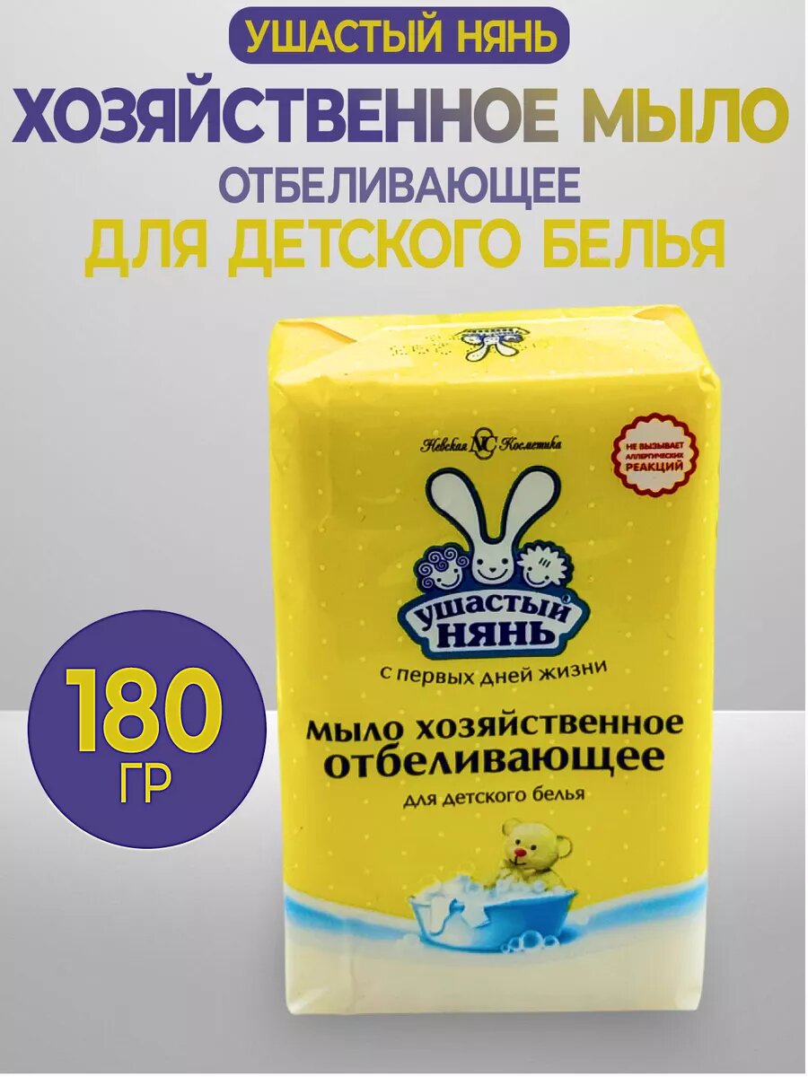 Ушастый нянь Мыло хозяйственное для детского белья отбеливающее, 180 г