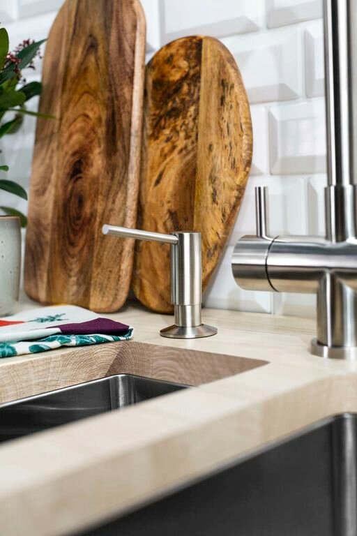 | Плюсы: | Очень стильный диспенсер, подойдёт под любую кухню. |