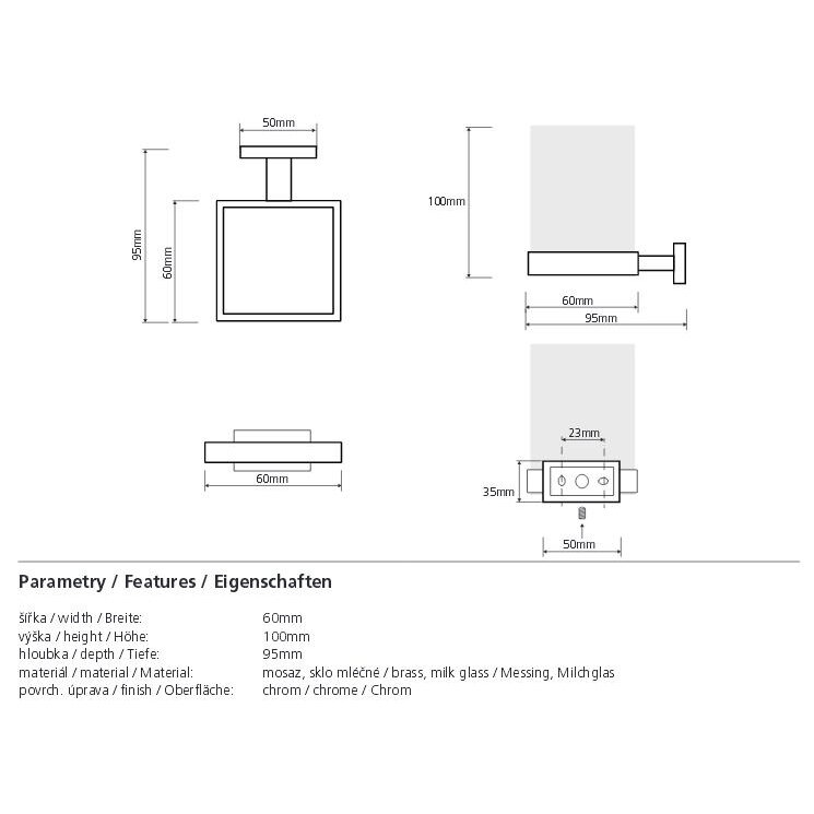 Стакан для зубных щеток Bemeta Plaza квадратный, настенный 60x100x95мм, хром 118210019