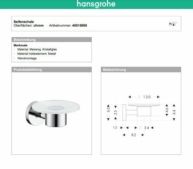 Мыльница Hansgrohe Logis 40515000, хром интересное: